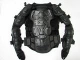 It is wonderful full body armor (back protector, shoulder cups, elbow cups, forearm protector, chest foam) all attached to a mesh shirt thing. Made of light weight yet durable stretchable Lycra/mesh net fabric and high impact injection molded plastic. Full zipper front closure. Adjustable straps throughout the arms and shoulders. Removable spine armor with tail protector. Wide elastic waist belt with Velcro adjustment. Thumb loops keep arm protection in place. This is a Super Quality ARMOR that Rating: |